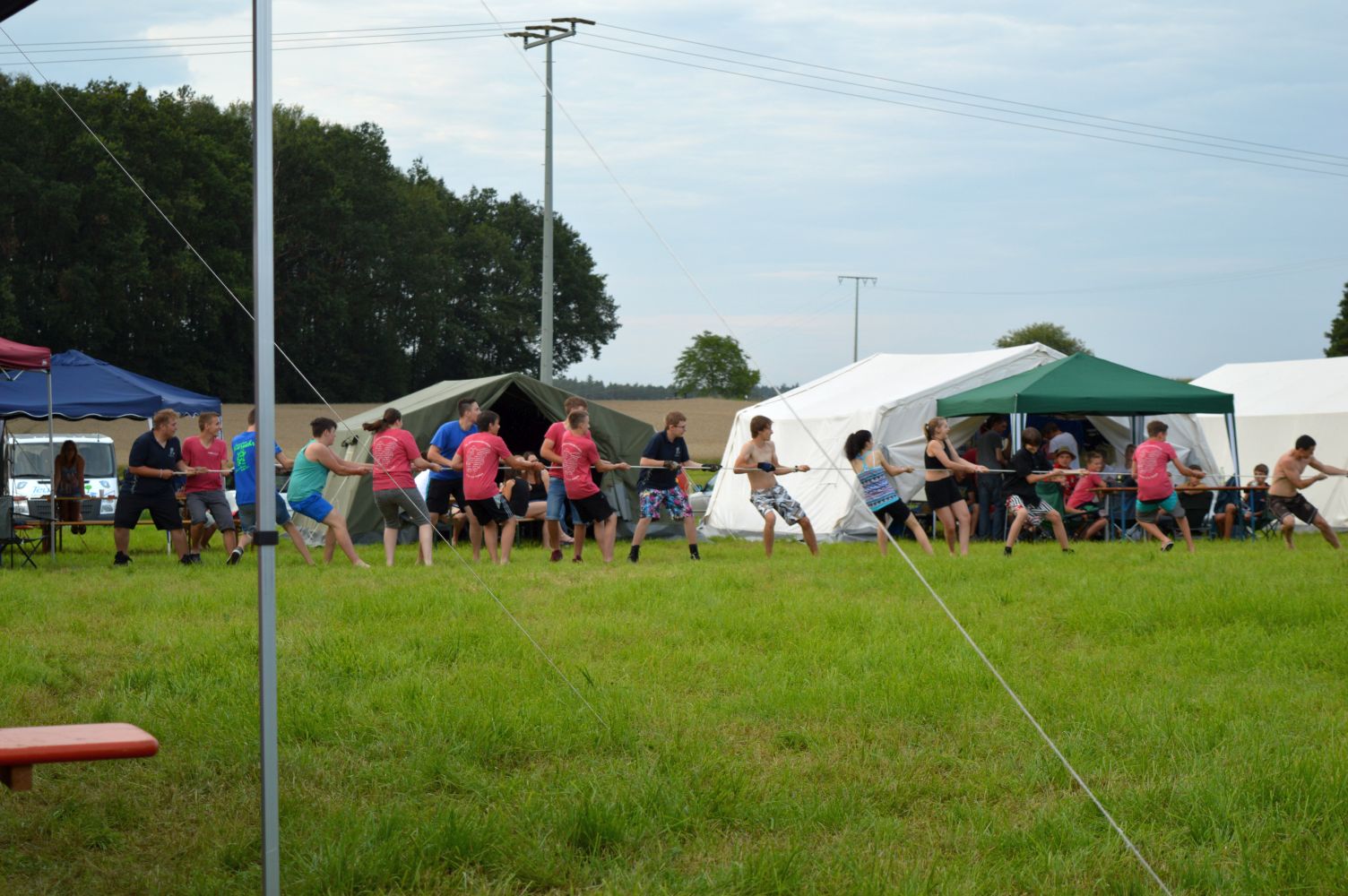 Am ersten Tag standen die Anreise und der Aufbau der Zelte an erster Stelle. Die Infrastruktur in Form von sanitären Anlagen, freundlicherweise zur Verfügung gestellt durch den THW Ortsverband Schwandorf, und die Verpflegung durch die Mobile Feldküche des THW Ortsverbandes Oberviechtach, musste aufgebaut werden. Im Umfeld hatte die FF Pilsheim bereits den Zeltplatz für den Einfall der Jugendfeuerwehren vorbereitet.